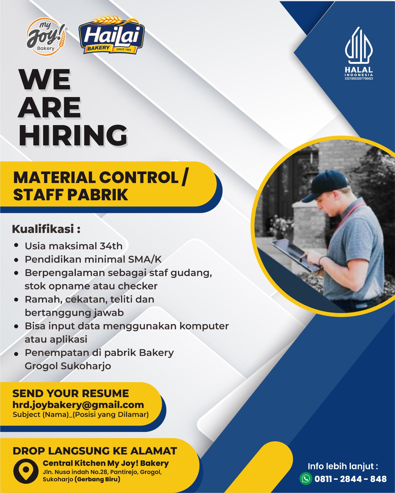 - MATERIAL CONTROL/STAFF PABRIK - My Joy! Bakery dan HaiLai Bakery